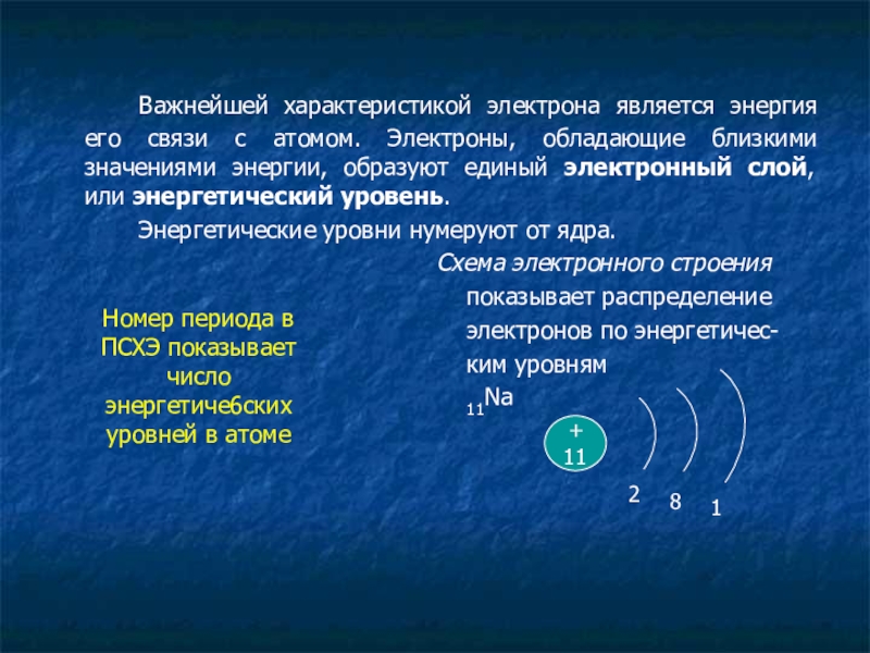 Номер периода в ПСХЭ показывает число энергетиче6ских уровней в атоме