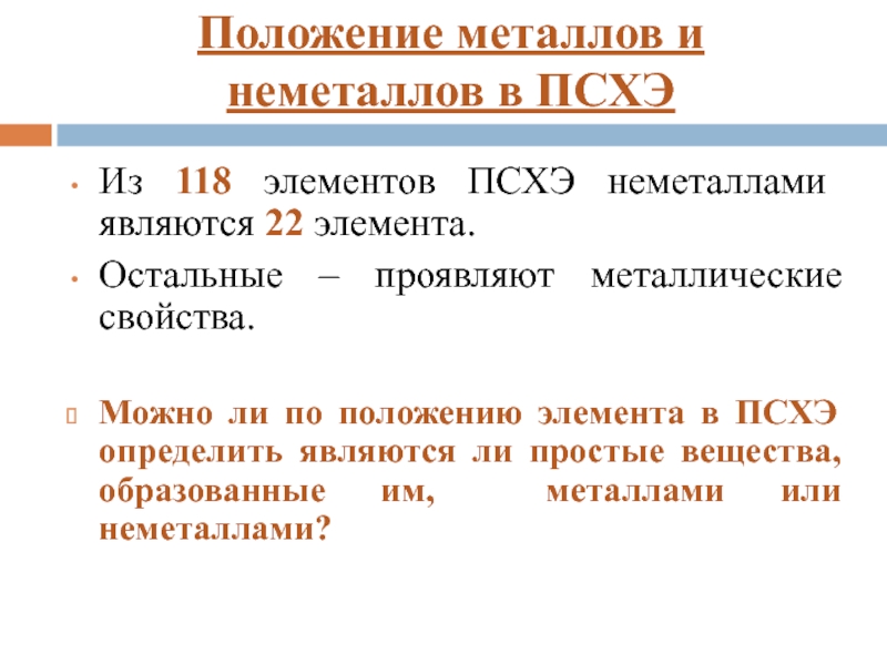 Можно ли по положению элемента в ПСХЭ определить являются ли простые вещества, образованные им, металлами или неметаллами?
