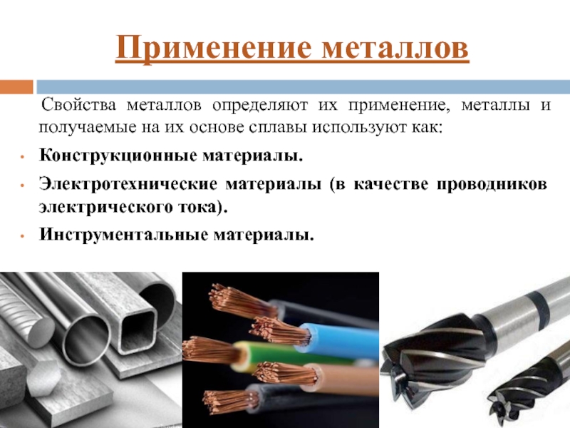 Свойства металлов определяют их применение, металлы и получаемые на их