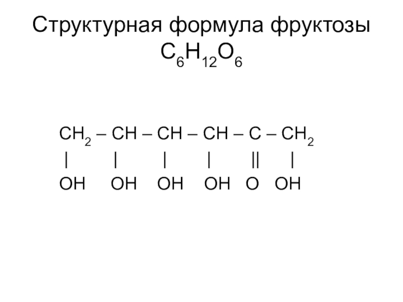 Структурная формула фруктозы С6Н12О6    СН2 – СН – СН – СН – С –