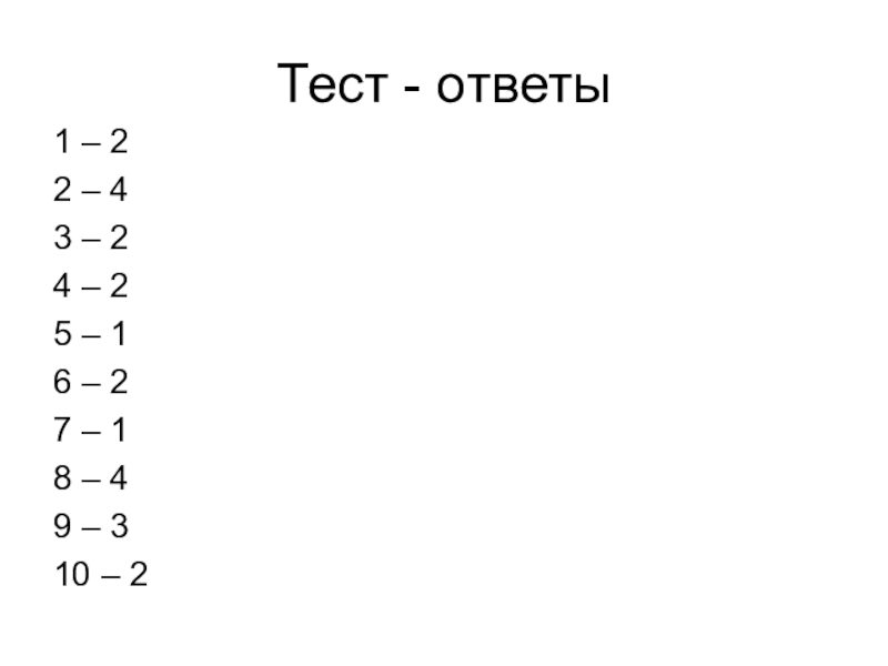 Тест - ответы1 – 22 – 43 – 24 – 25 – 16 – 27 – 18