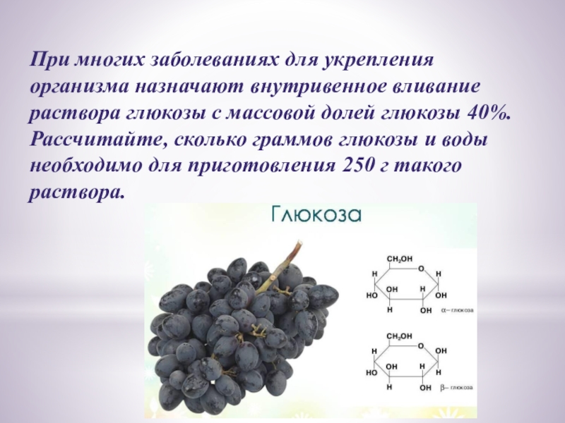 с массовой долей глюкозы 40%. Рассчитайте, сколько граммов глюкозы и воды необходимо для приготовления 250 г такого раствора.
