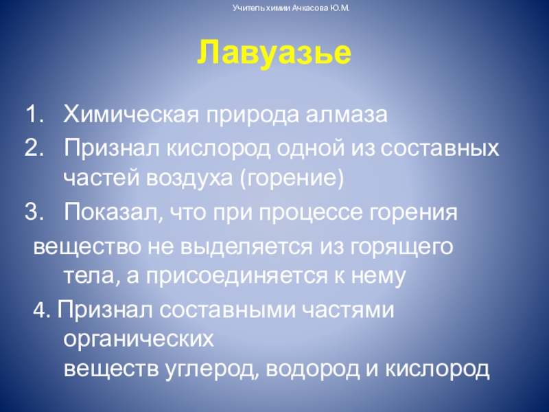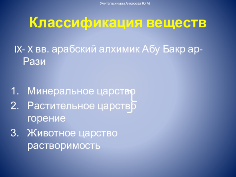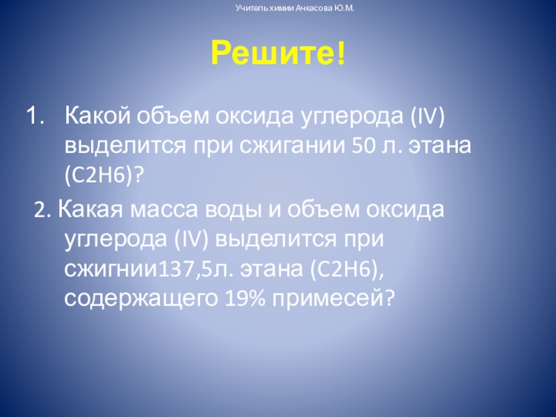 Учитель химии Ачкасова Ю.М.