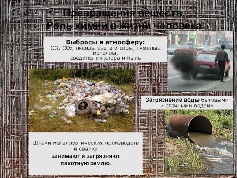 СО, СО2, оксиды азота и серы, тяжелые металлы,