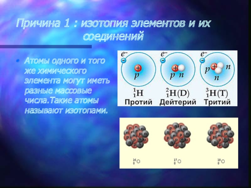 Слайд 2Причина 1 : изотопия элементов и их соединений