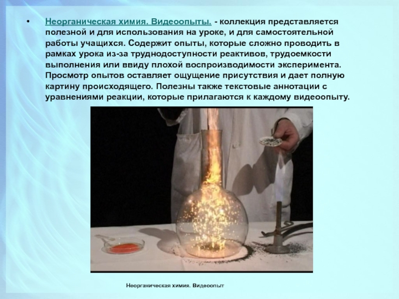 Слайд 23Неорганическая химия. Видеоопыты. - коллекция представляется полезной и для использования на