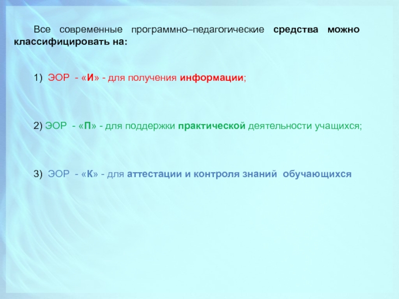 2) ЭОР - «П» - для поддержки практической деятельности учащихся;