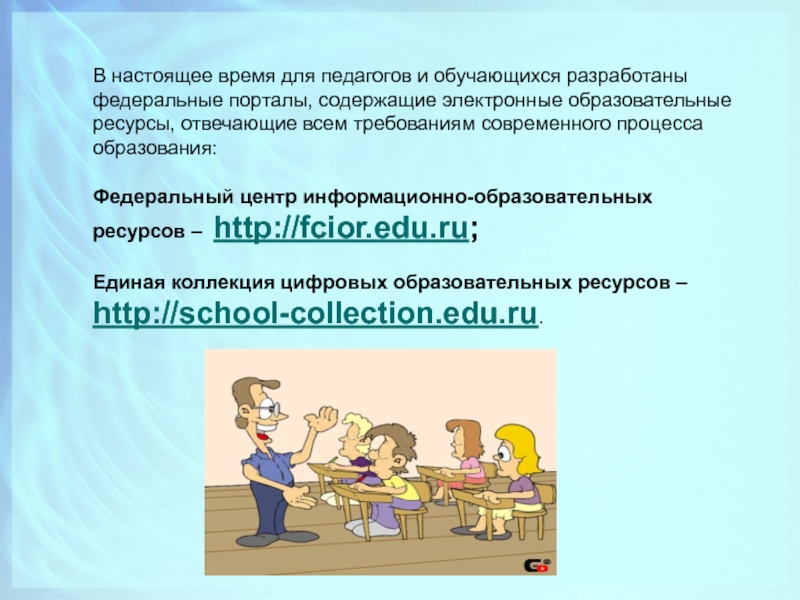 Слайд 6В настоящее время для педагогов и обучающихся разработаны федеральные порталы, содержащие