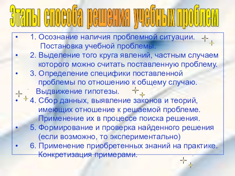 Этапы способа решения учебных проблем