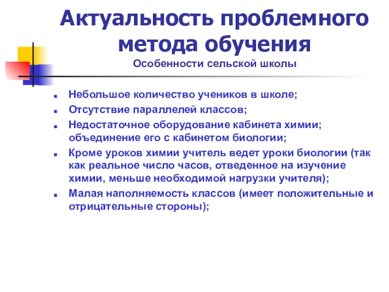 Слайд 4Небольшое количество учеников в школе;