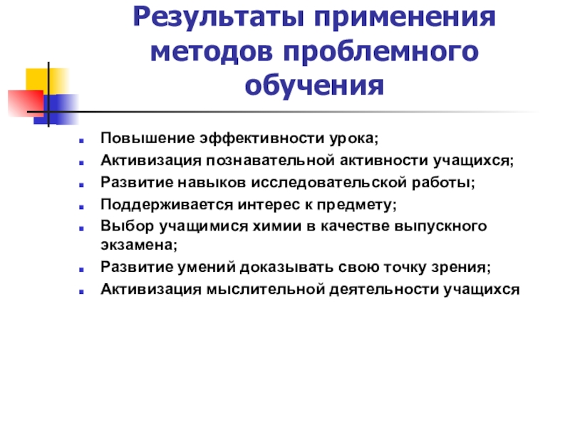 Результаты применения методов проблемного обучения