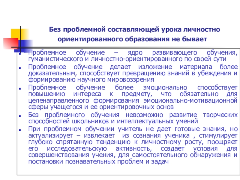 Слайд 5 Без проблемной составляющей урока личностно ориентированного образования не бывает