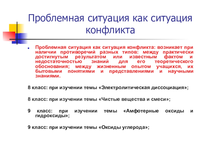 Проблемная ситуация как ситуация конфликта: возникает при