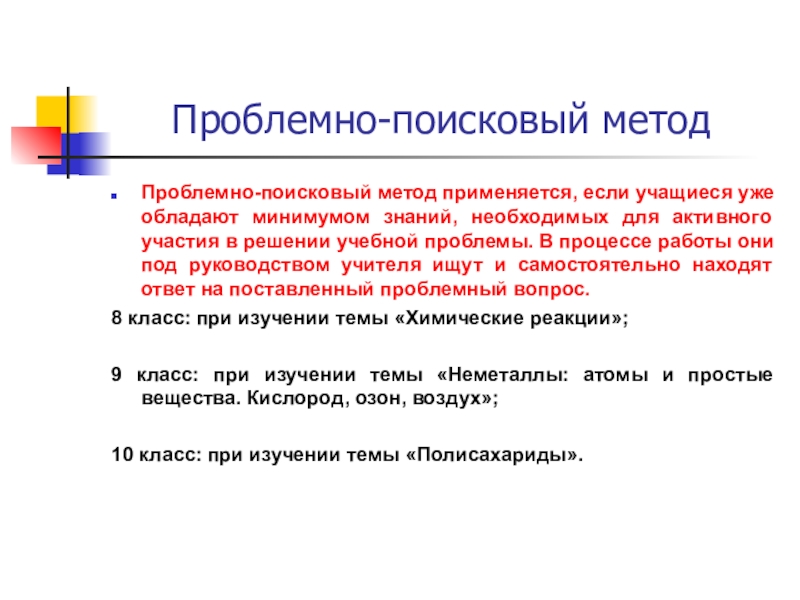 Проблемно-поисковый метод применяется, если учащиеся уже обладают минимумом знаний, необходимых