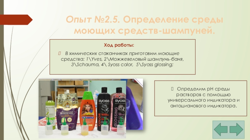 Слайд 33Опыт №2.5. Определение среды моющих средств-шампуней.