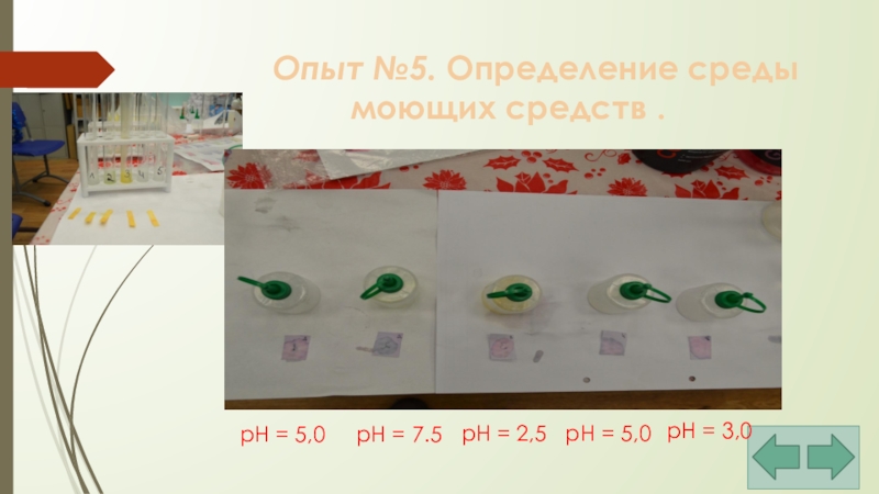 Слайд 34 Опыт №5. Определение среды моющих средств .