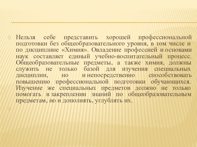 Слайд 24Нельзя себе представить хорошей профессиональной подготовки без общеобразовательного уровня, в том