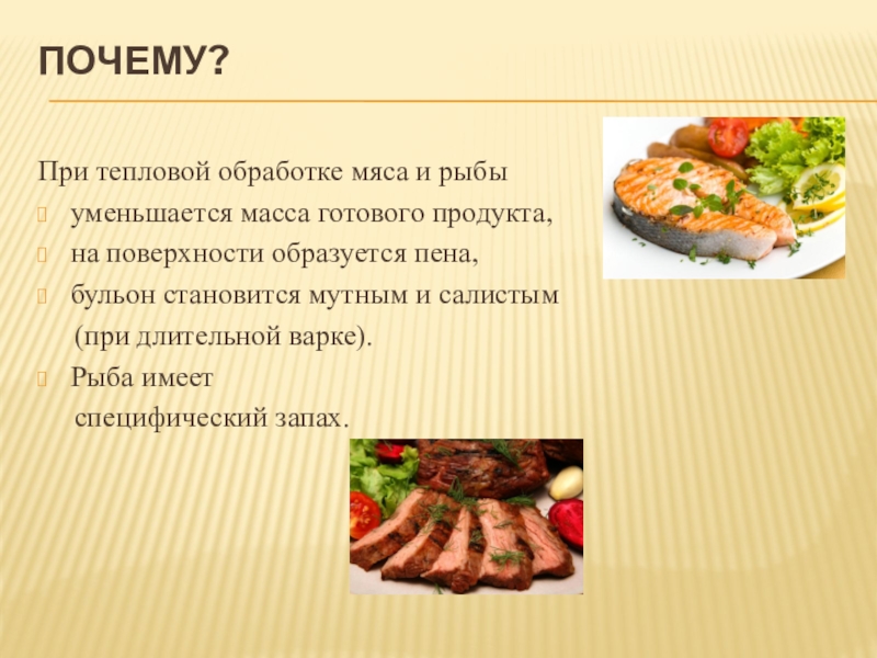 1. Почему при тепловой обработке мяса и рыбы происходит уменьшение массы