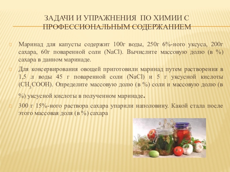 Слайд 10Задачи и упражнения по химии с профессиональным содержанием