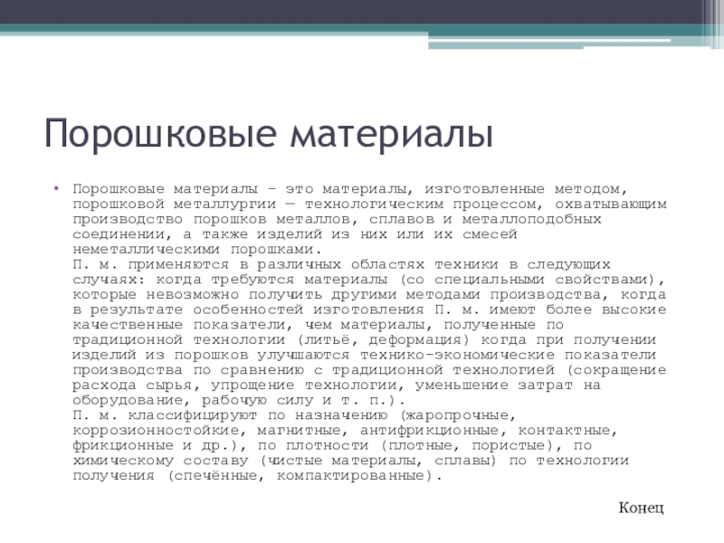 Порошковые материалы – это материалы, изготовленные методом, порошковой металлургии —