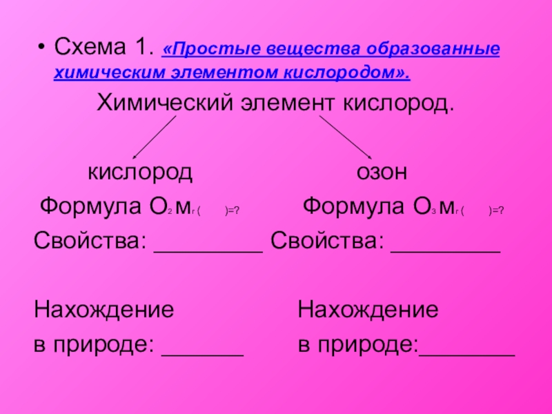Схема 1. «Простые вещества образованные химическим элементом кислородом».Химический элемент кислород.    кислород