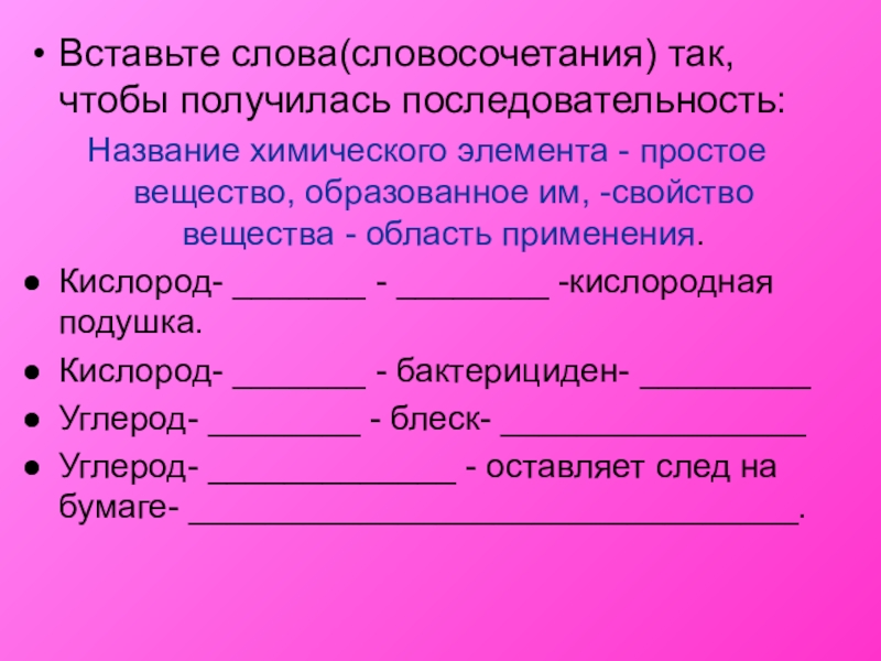 Слайд 8Вставьте слова(словосочетания) так, чтобы получилась последовательность:
