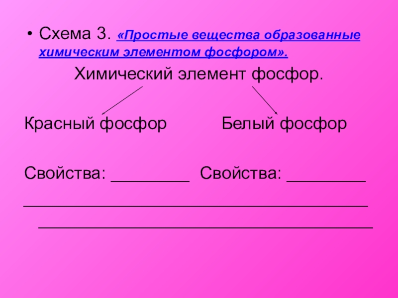 Слайд 6Схема 3. «Простые вещества образованные химическим элементом фосфором».
