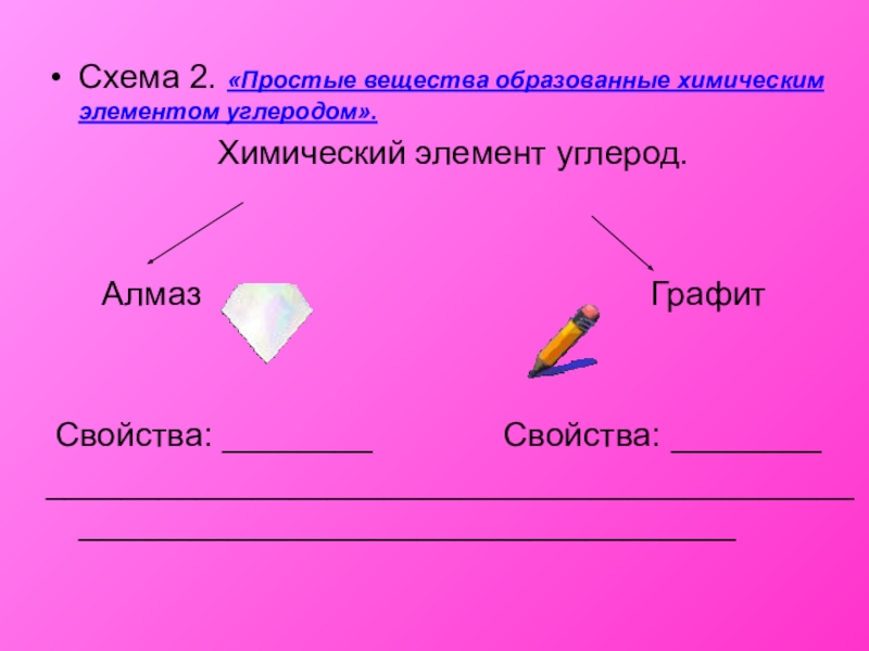 Схема 2. «Простые вещества образованные химическим элементом углеродом».Химический элемент углерод.   Алмаз