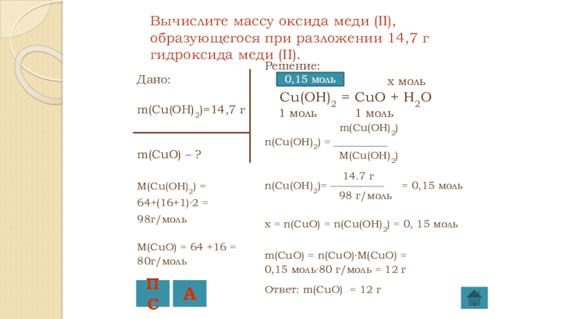 x = n(CuO) = n(Cu(OH)2) = 0, 15 моль