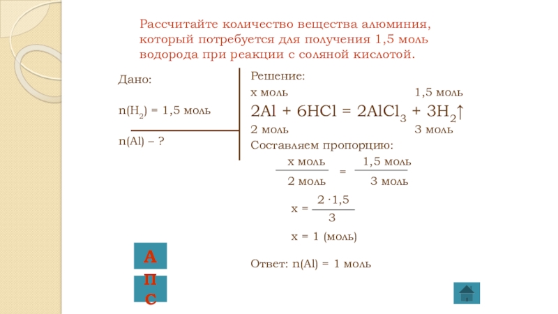 Ответ: n(Al) = 1 моль