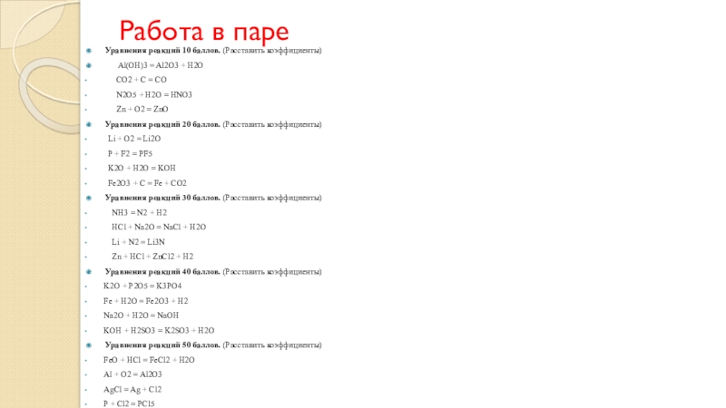 б)уравнения реакций