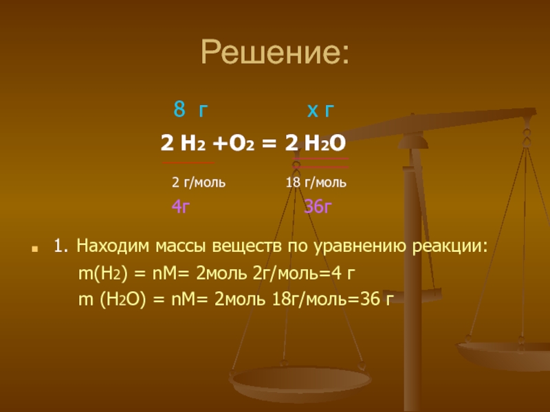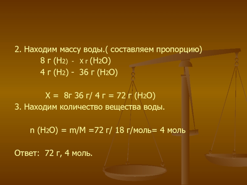 М (H2) =2 г/моль М (H2О) = 18 г/моль