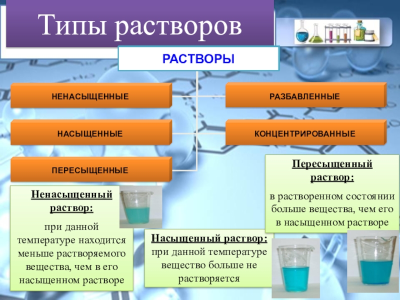 Насыщенный раствор: при данной температуре вещество больше не растворяется