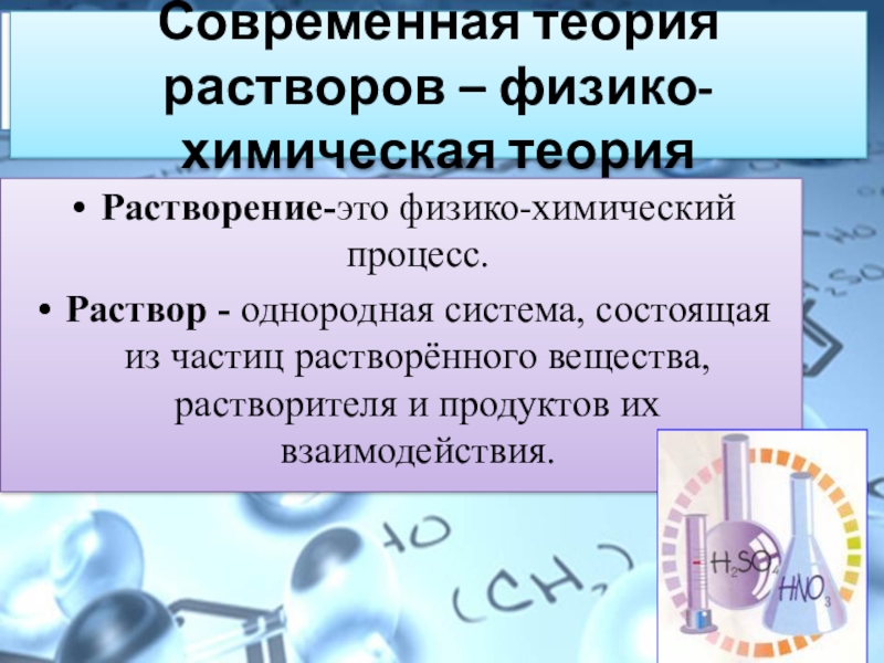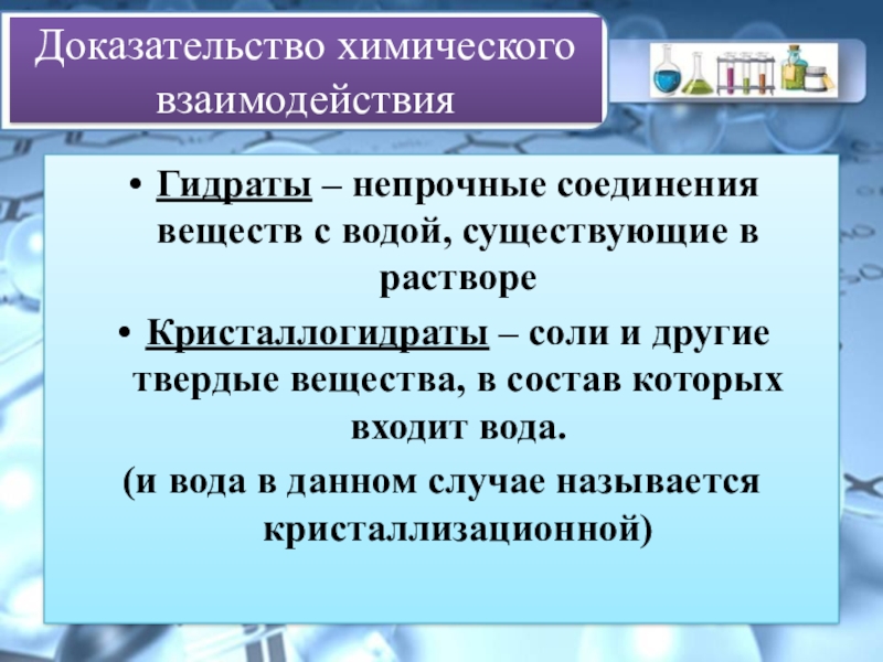 Растворение-процесс химическое взаимодействие растворённого вещества с молекулами воды