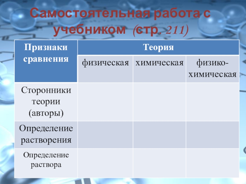 Раствор – однородная система, состоящая из частиц растворенного вещества, растворителя и продуктов их взаимодействия.