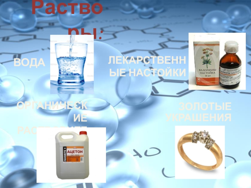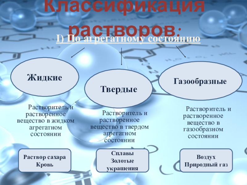 Растворитель и растворенное вещество в жидком агрегатном состоянии