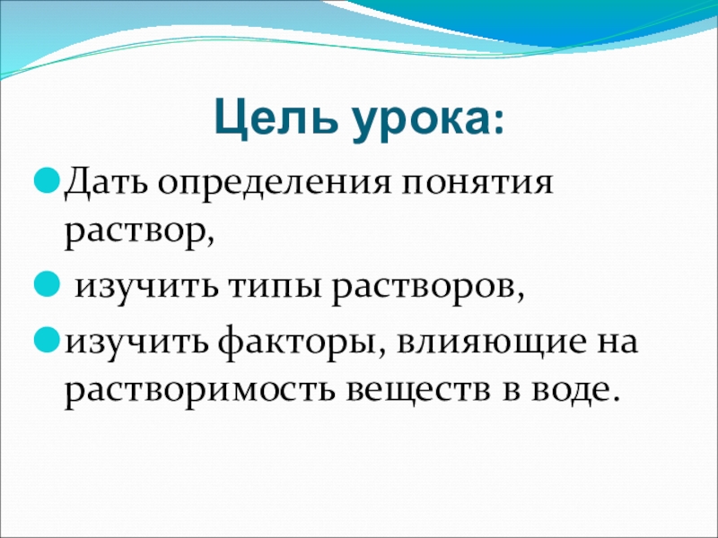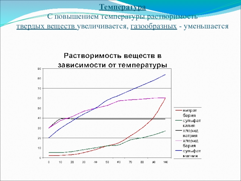 Ненасыщенный раствор – раствор, в котором при данной температуре находится меньше растворяемого вещества, чем в его насыщенном растворе