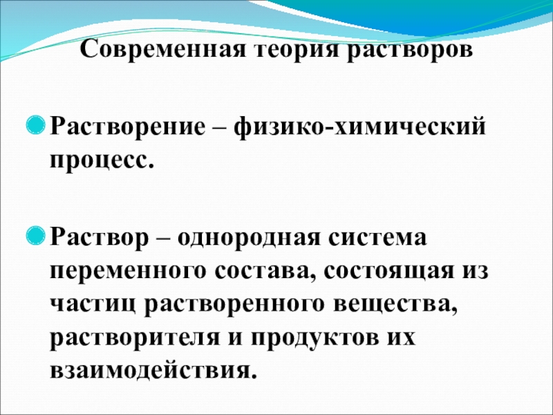 Растворение – химическое взаимодействие растворенного вещества с молекулами воды