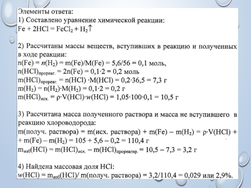 4. Железо массой 5,6 г растворили в 100 мл раствора соляной кислоты (р=1,05 г/мл) с массовой долей 10%. Вычислите массовую долю хлороводорода в полученном растворе.