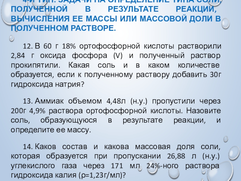 Слайд 264-Й ТИП. ЗАДАЧИ НА ОПРЕДЕЛЕНИЕ ТИПА СОЛИ, ПОЛУЧЕННОЙ В РЕЗУЛЬТАТЕ РЕАКЦИИ,