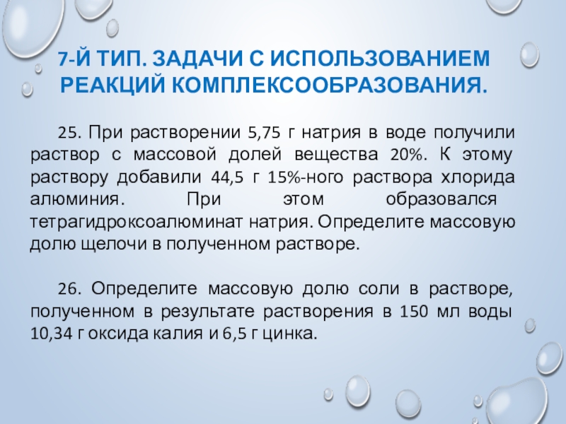 Слайд 367-Й ТИП. ЗАДАЧИ С ИСПОЛЬЗОВАНИЕМ РЕАКЦИЙ КОМПЛЕКСООБРАЗОВАНИЯ.