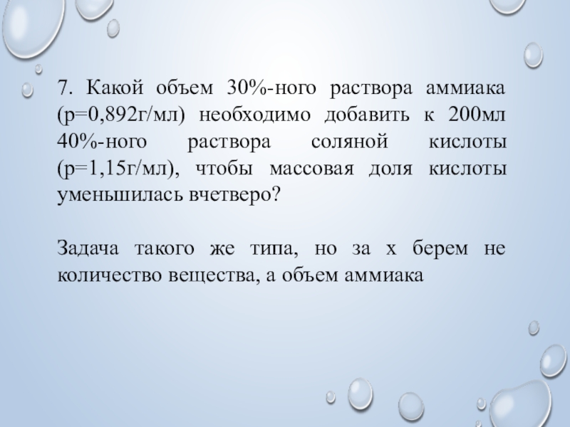 Слайд 187. Какой объем 30%-ного раствора аммиака (р=0,892г/мл) необходимо добавить к 200мл