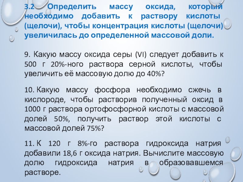 Слайд 223.2 Определить массу оксида, который необходимо добавить к раствору кислоты (щелочи),