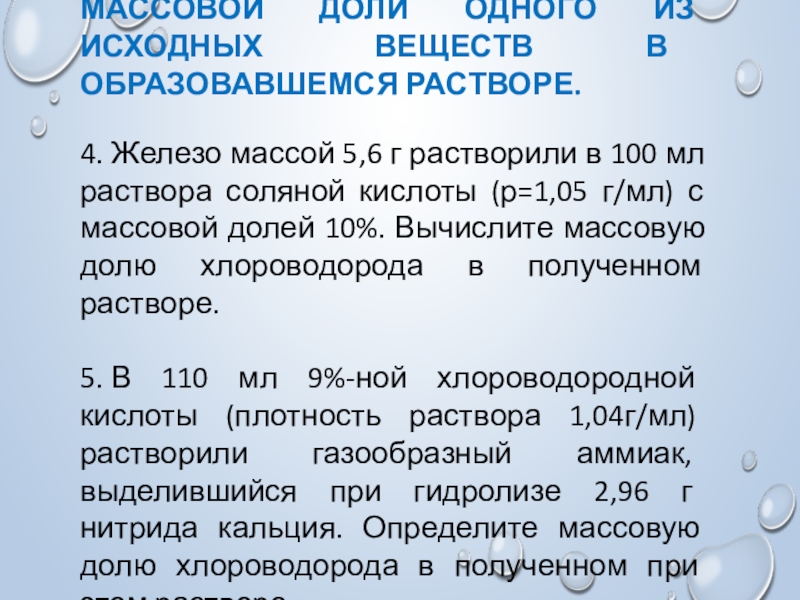 ВЫЧИСЛЕНИЯ ЕЕ МАССЫ ИЛИ МАССОВОЙ ДОЛИ В ПОЛУЧЕННОМ РАСТВОРЕ.