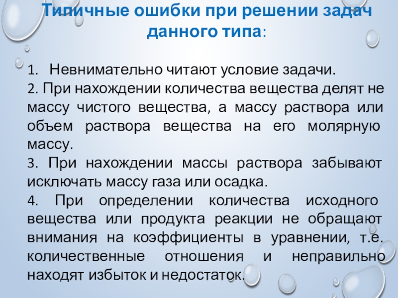 Слайд 14Типичные ошибки при решении задач данного типа: