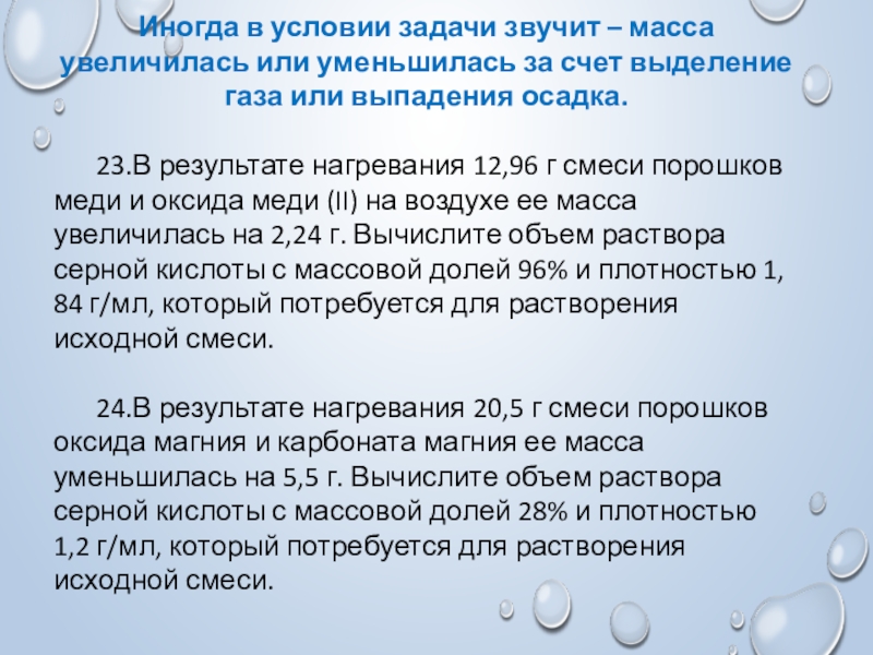 Слайд 35Иногда в условии задачи звучит – масса увеличилась или уменьшилась за