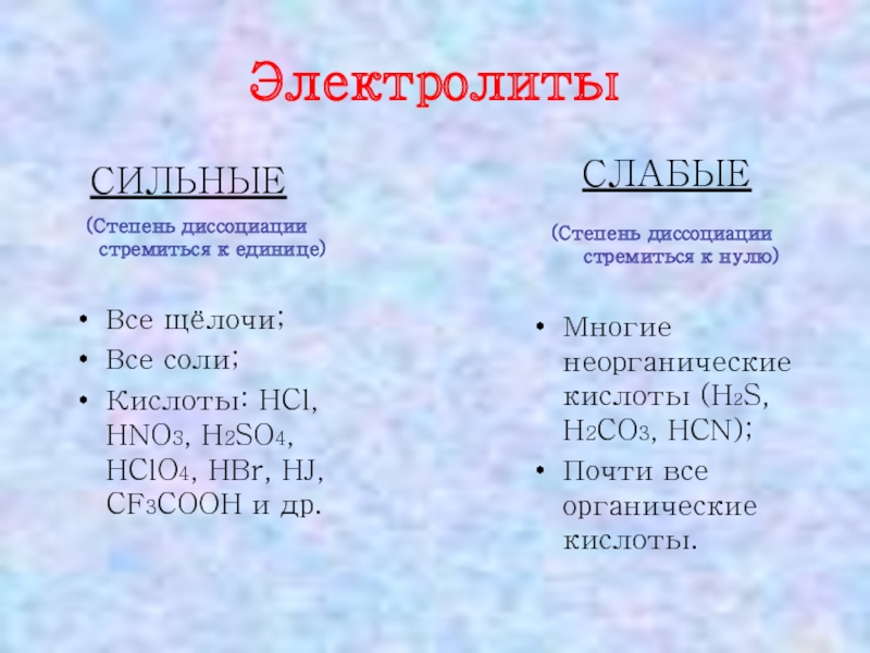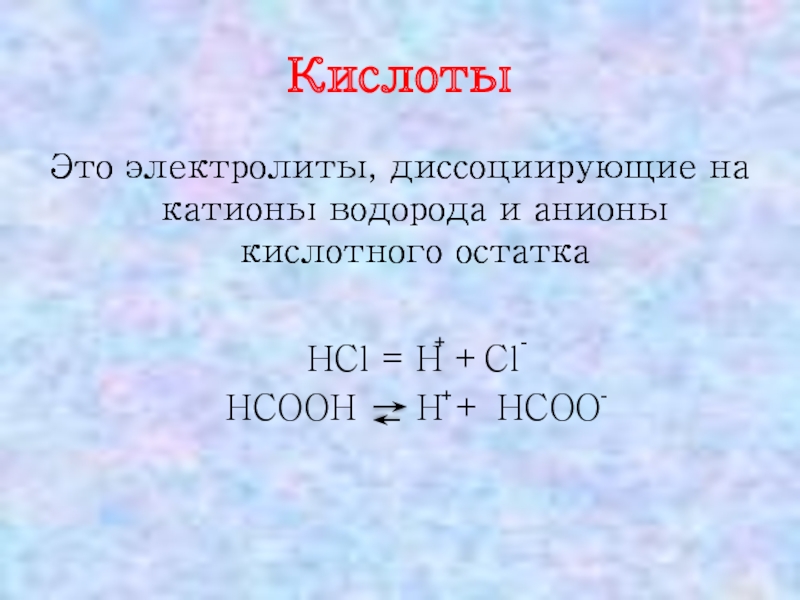 Многие неорганические кислоты (H2S, H2CO3, HCN);