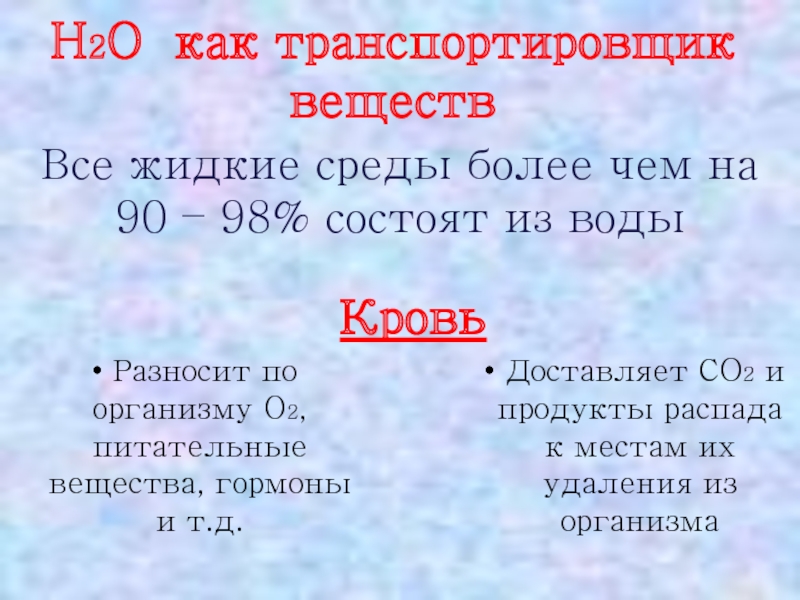 Доставляет СO2 и продукты распада к местам их удаления из организма