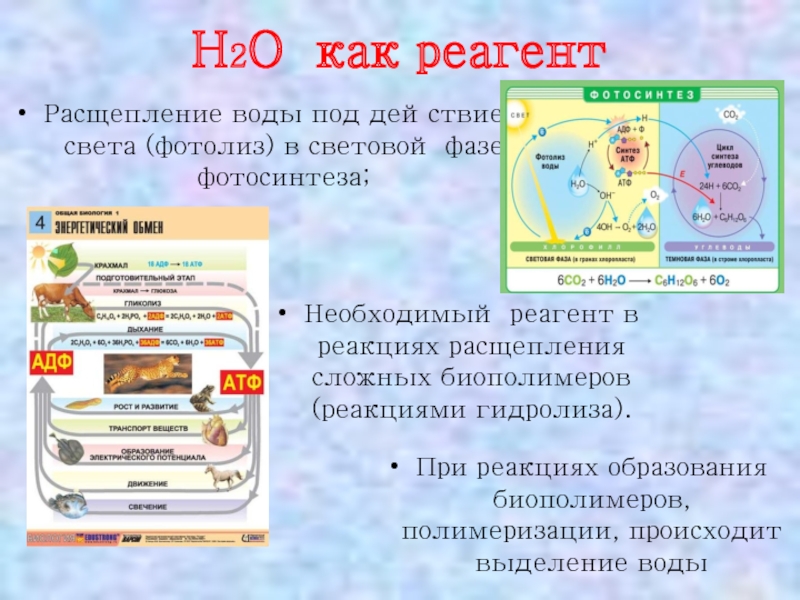 Необходимый реагент в реакциях расщепления сложных биополимеров (реакциями гидролиза).