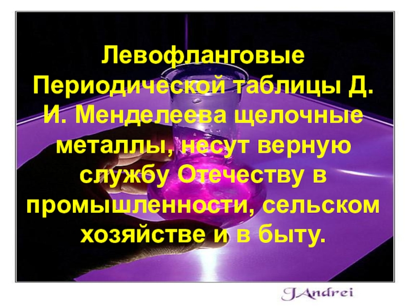 Слайд 18Левофланговые Периодической таблицы Д.И. Менделеева щелочные металлы, несут верную службу Отечеству